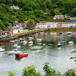 5308uk/ Pastel coloured buildings on Crackwell Street, Tenby, Pembrokeshire, Wales