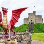 5389uk/ Laugharne Castle (Castell Talacharn), beloved of Dylan Thomas, its most famous resident, as seen across River Taf, Carmarthenshire, Wales