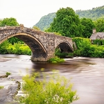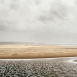 5441uk/ A photographer on the cliffs above Rhossili Bay Beach, Swansea, Wales