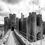 bw927/ Caernarfon Castle (Castell Caernarfon) reflected in Afon Seiont, Caernarfon, Gwynedd, Wales